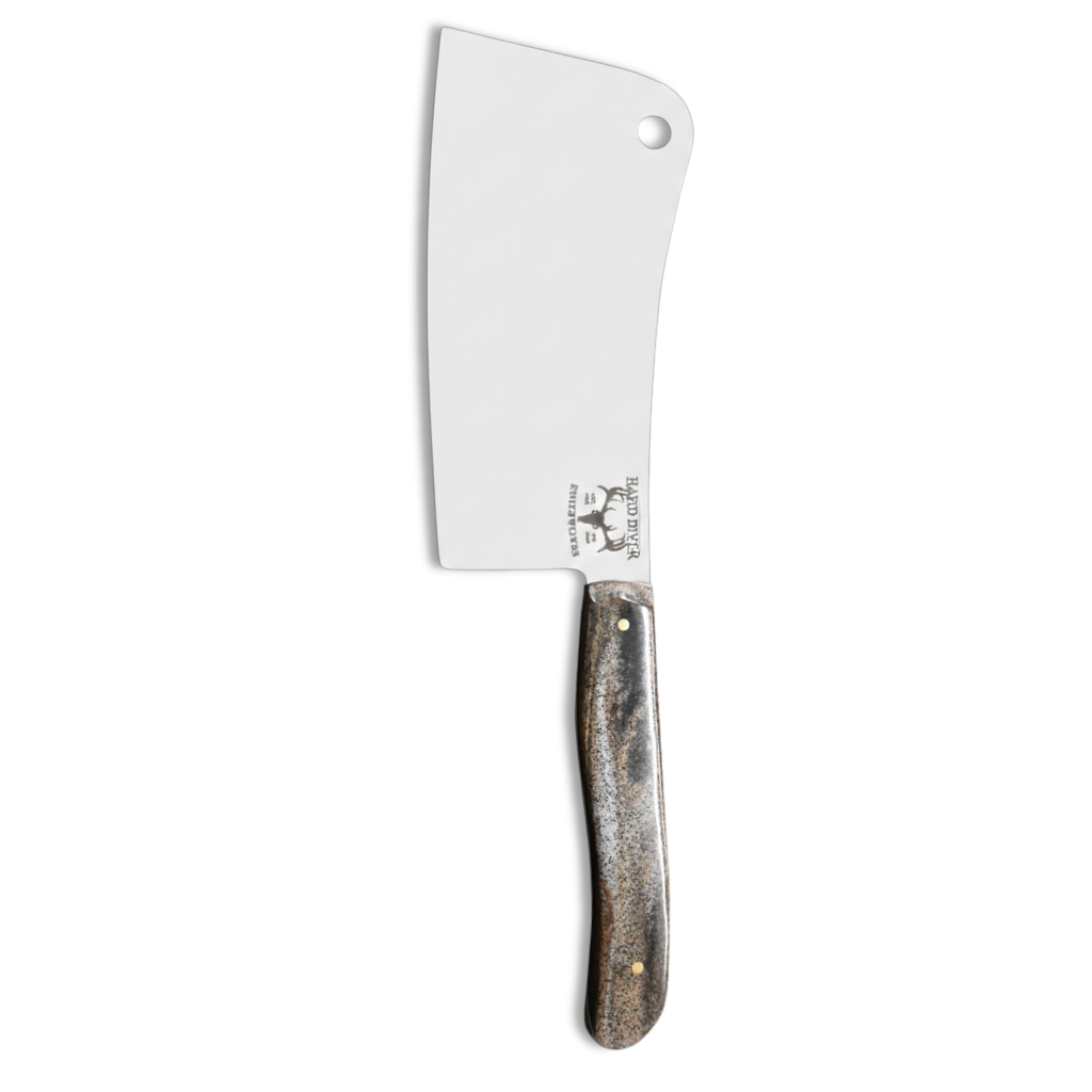 The Cleaver is purpose built to be the brute force of your kitchen knives. It's wide 6 1/8" blade makes it perfect for withstanding repeated blows directly into thick meat, dense cartilage, bone, and the cutting board below. The lengthy 11 1/4" handle is crafted to maintain control and comfort when the cleaver is in use.